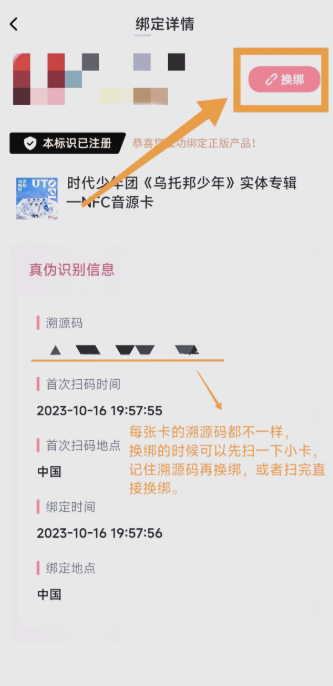 2、在我的绑定内找到要换绑的小卡,点击换绑