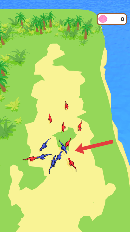 3、战斗间隙注意收集场景中的贝壳资源,这些资源可用于强化恐龙战力或解锁新的恐龙单位,助力推进游戏。