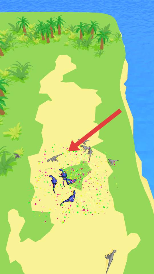 2、在岛屿作战时,观察敌人恐龙的分布位置,指挥恐龙攻击薄弱区域,借助战斗特效覆盖范围提升攻击效率。