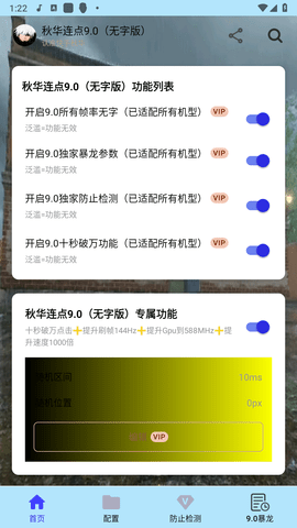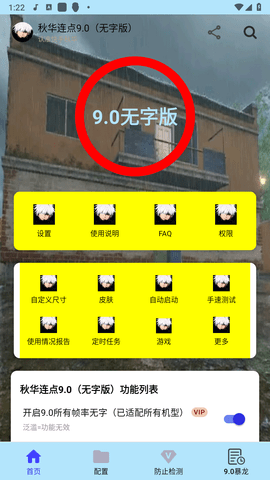 秋华连点9.0无字版作为一款多功能的连点器工具。该软件已经适配了所有机型,具备所有帧率无字显示、独家暴龙参数、独家防检测、十秒破万等功能。此外,用户还能设置定时任务、自定义尺寸和皮肤等。感兴趣的朋友欢迎来下载尝试吧。