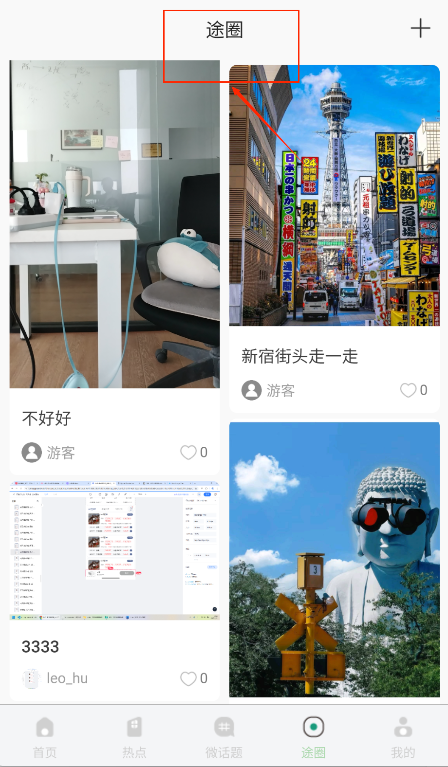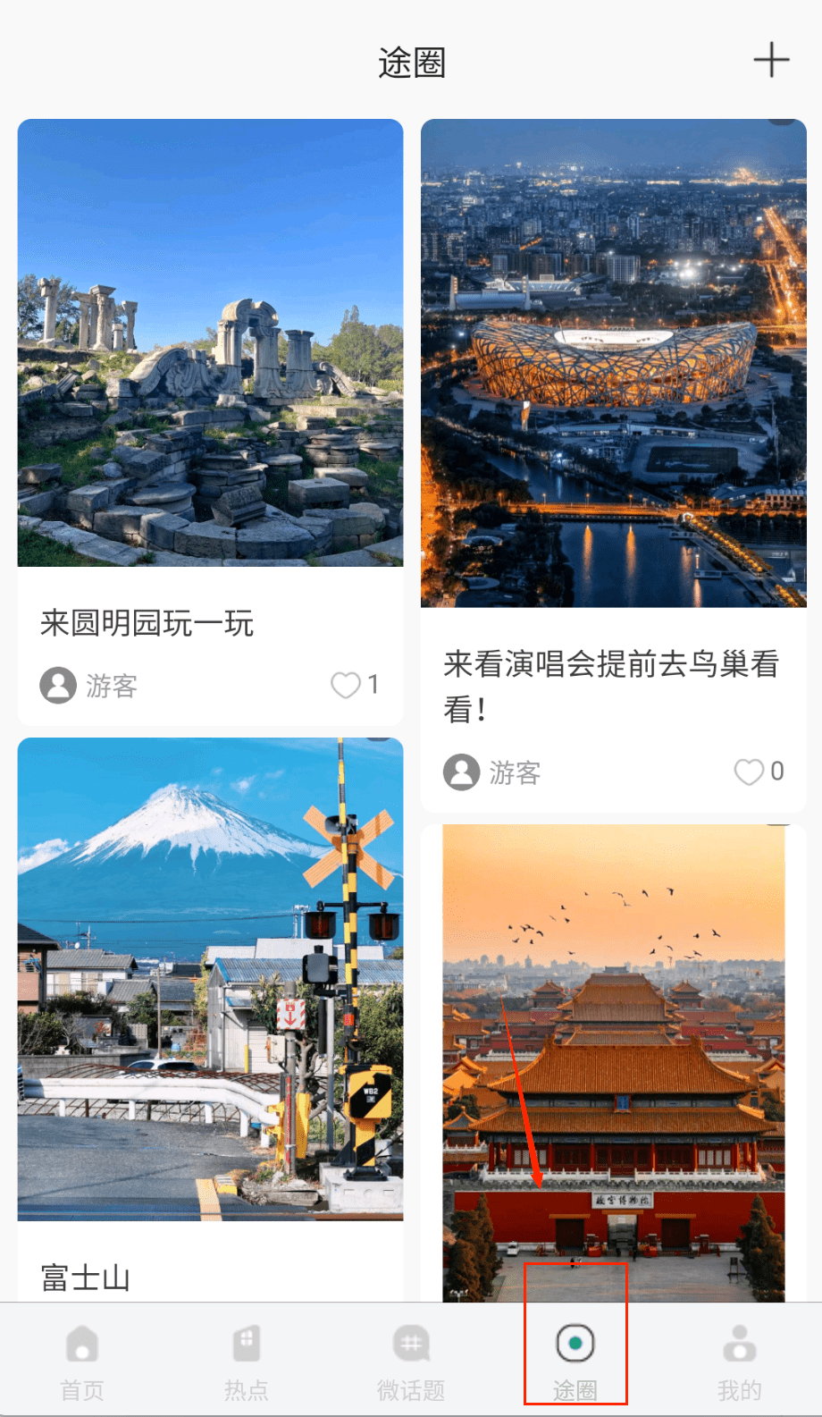 3、途圈广场汇集了各地用户分享的旅行地点,通过地图或列表形式展示,看到心仪的目的地可以直接收藏方便日后规划行程哦。