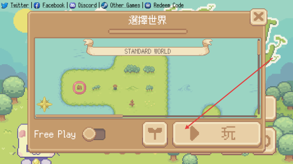 2、进入选择世界界面,确认STANDARDWORLD等世界选项后,点击按钮进入游戏世界。