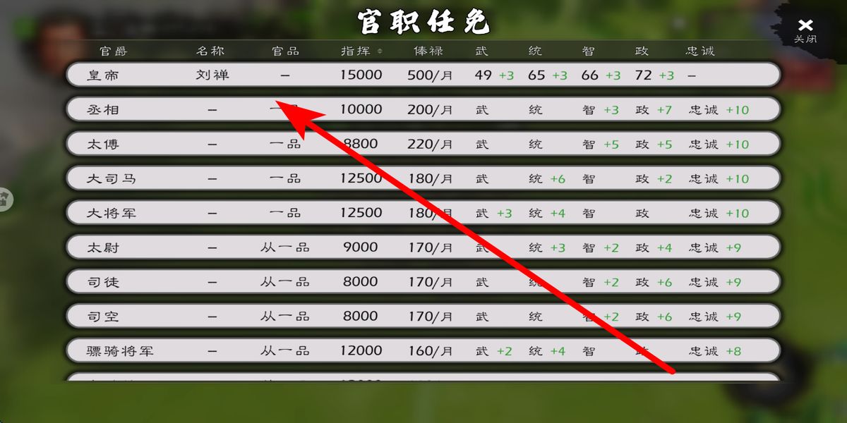 3、接着进行内政人才管理,在官职任免界面,可对不同官爵进行人员任命,不同官职有着不同的俸禄与属性加成,合理任免人才,能提升势力的内政等方面能力。