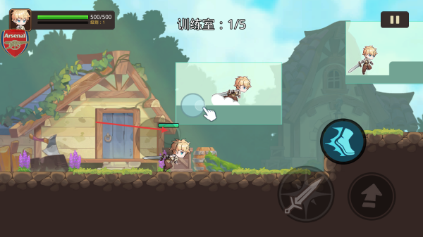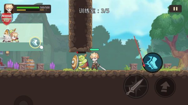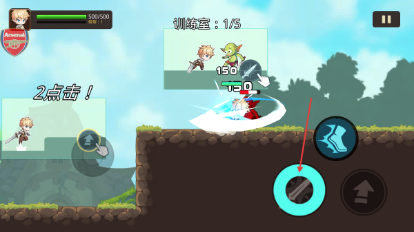 2、遇到敌人时,快速点击攻击按钮对敌人进行连击,造成伤害,注意敌人的血量变化。