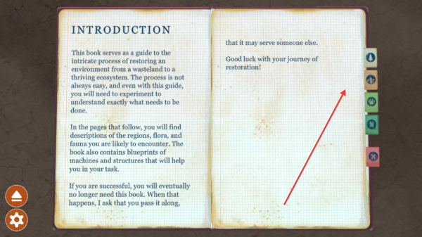 1、阅读INTRODUCTION指引书,了解到游戏目标是恢复荒地生态系统,过程中需不断尝试探索。