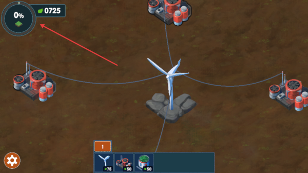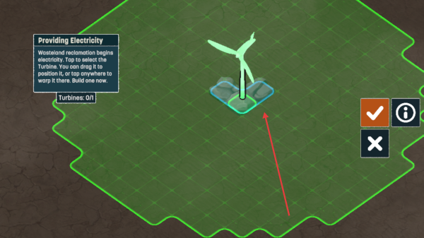 3、依据提示,在合适位置放置风力涡轮机来供电,点击对应按钮完成建筑操作。