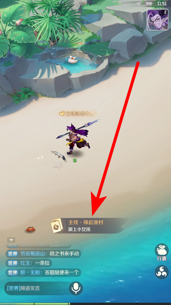 4、同时,要跟随主线指引行动,主线会提示诸如跟上小女孩等任务,按照这些指引,前往指定地点,完成主线任务,逐步探索灵兽冒险世界。