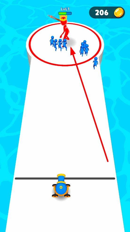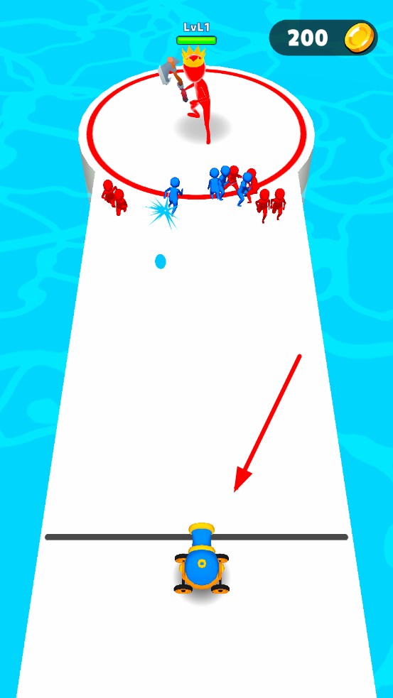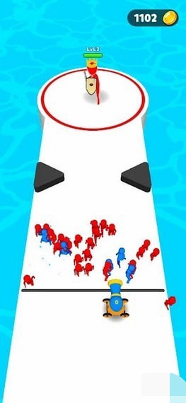 1、兵力转化对抗:蓝色小人从零散发射到军团成型,数量积累直接左右胜负;每发炮弹都是兵力转化关键步,见证弱势小兵群演变为碾压军团,从单点突破到全面包围冲击。