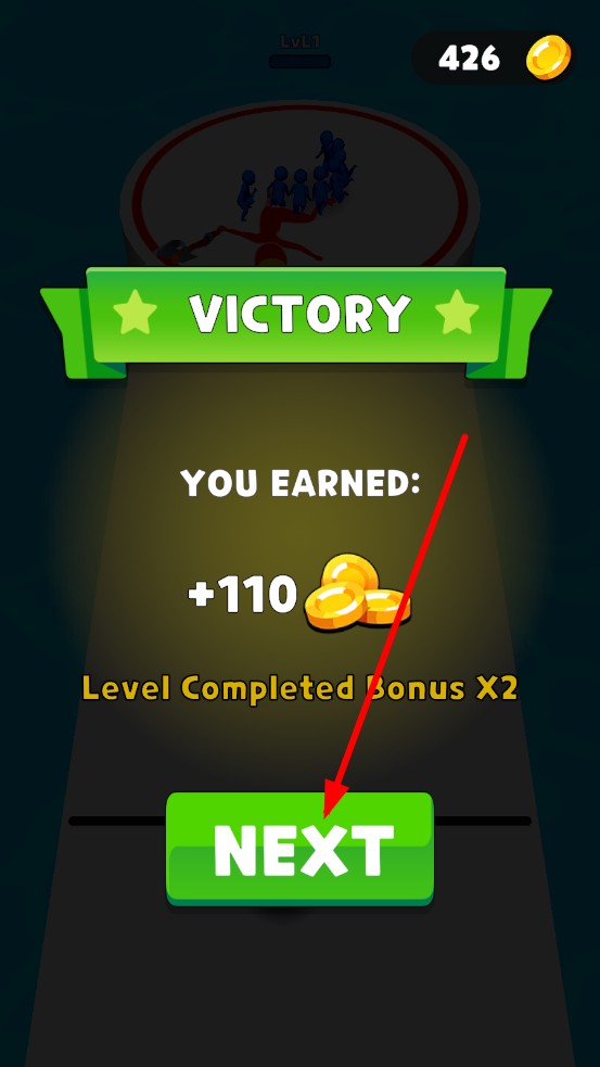 3、击败领主后,屏幕弹出VICTORY,收获基础金币与双倍奖励,点击NEXT进入下一关,挑战更加复杂的全新赛道。