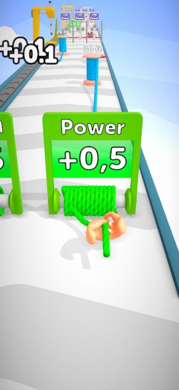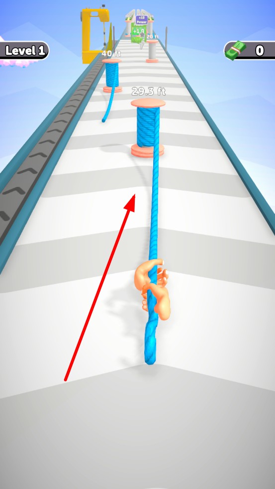 1、绳索收集机制:赛道散布不同规格绳索卷轴,收集后自动累加长度,同色绳索合并瞬间触发翻倍特效,每一次收集都直观膨胀闯关资本。