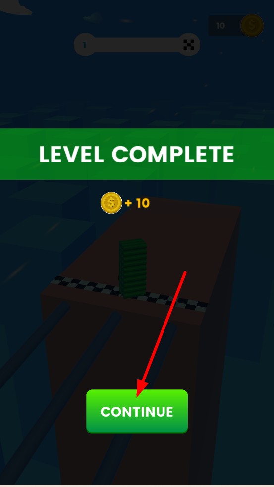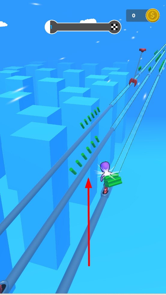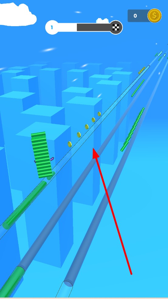 3、尽可能收集多的木板,并且通过短的空道路,冲过终点线后获得金币奖励,解锁新场景与角色专属技能。