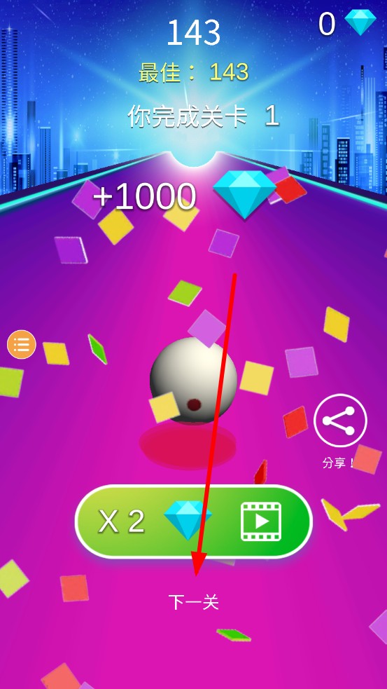 3、纪录挑战欲:界面实时显示最佳滚动距离,通关钻石可解锁炫光皮肤定制外观,持续激发刷新纪录的竞争欲望,彰显滚动实力,打造个性化外观。