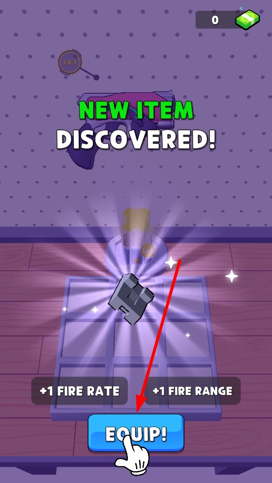 1、使用金币,获得新的枪支部件,在装备界面中,点击EQUIP装配新枪支部,为后续挑战储备适配基础火力。