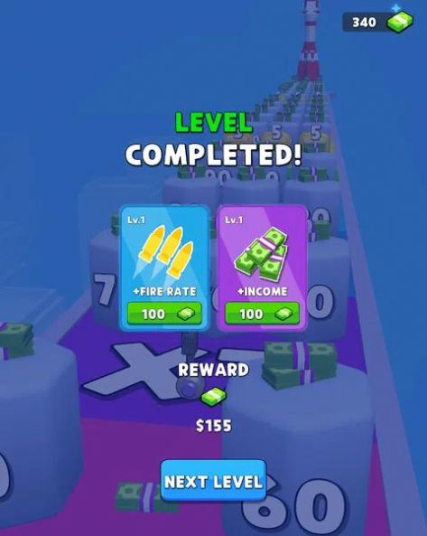 3、奖励分支选择:通关后可抉择射速、收益、弹药扩容等奖励方向,依据当前发展需求灵活取舍,冲刺关卡选射速,积累阶段选收益,深度影响闯关策略走向。