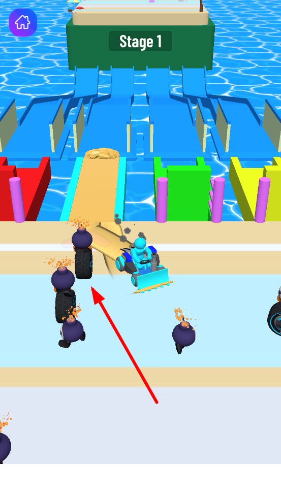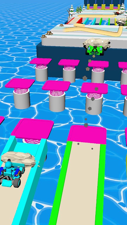 3、在后半段的道路上,需躲避炸弹人,碰撞到会导致沙子掉落,避免浪费时间,全力冲上终点平台,即刻解锁新赛道。
