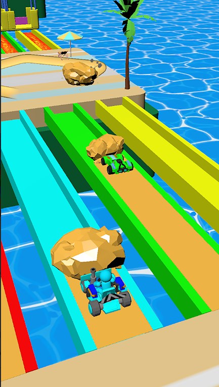 赛车推土机赛车是一款将策略与竞速深度融合的创意手游,玩家驾驶卡通推土机赛车驰骋沙质赛道,需灵活操控铲斗铲沙铺路,填补沟壑、搭建斜坡应对复杂地形;与对手竞速时,可借沙堆干扰或超越,还要突破熔岩滑道、滚动轮胎等关卡陷阱,在碧海环绕的赛场中,体验操作与策略交织的竞速乐趣。