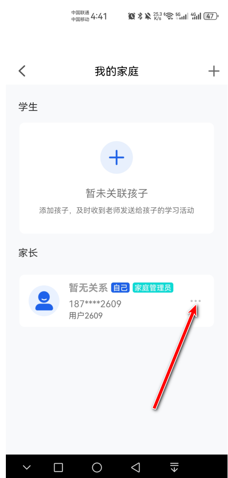 1.首先我们需要先注册一个家长身份的账号,然后已经关联添加了一个孩子的信息,如下图所示。