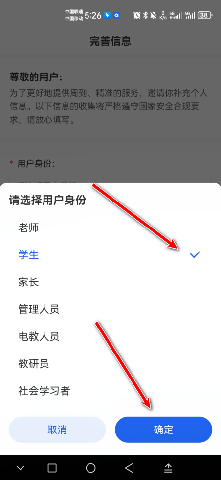 10.然后正确填写以下的信息内容即可从家长改成学生了。