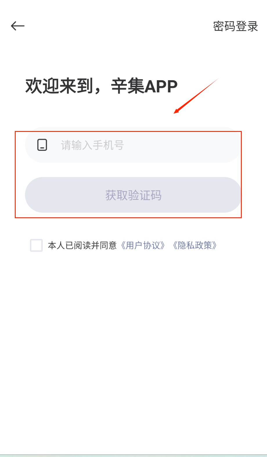 2、要是想用密码登录就点右上角“密码登录”,在密码框输入注册时设置的密码,旁边小眼睛图标可以切换显示或隐藏密码。