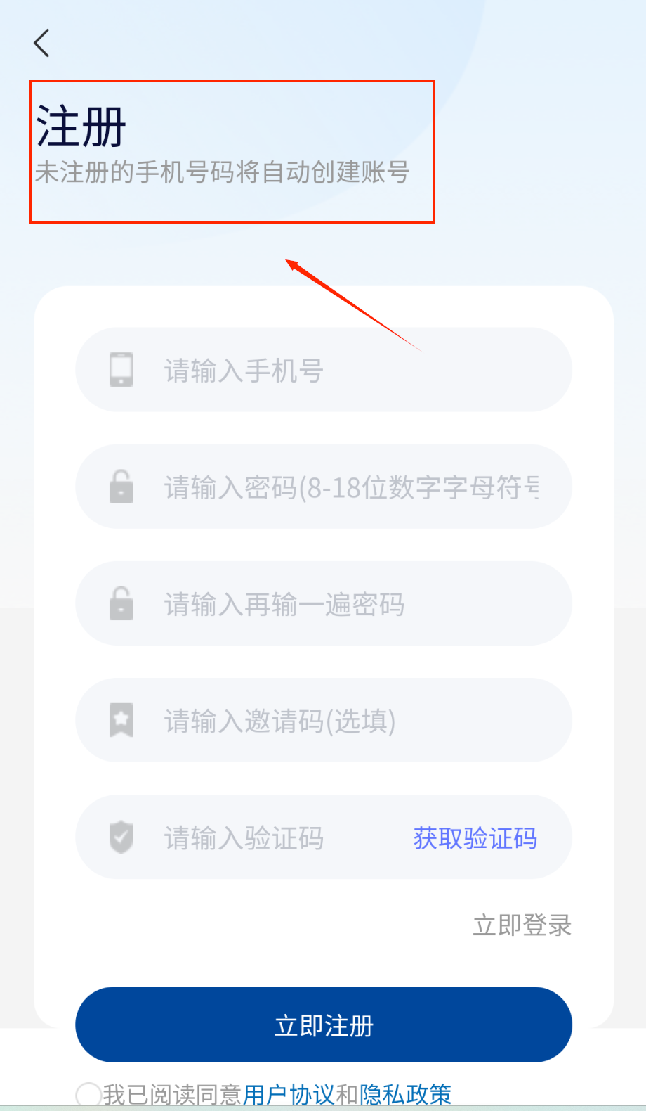 1、打开软件进入注册页面,在浅色背景界面找到带手机图标的输入框,准确输入11位手机号码,注意检查数字是否正确。