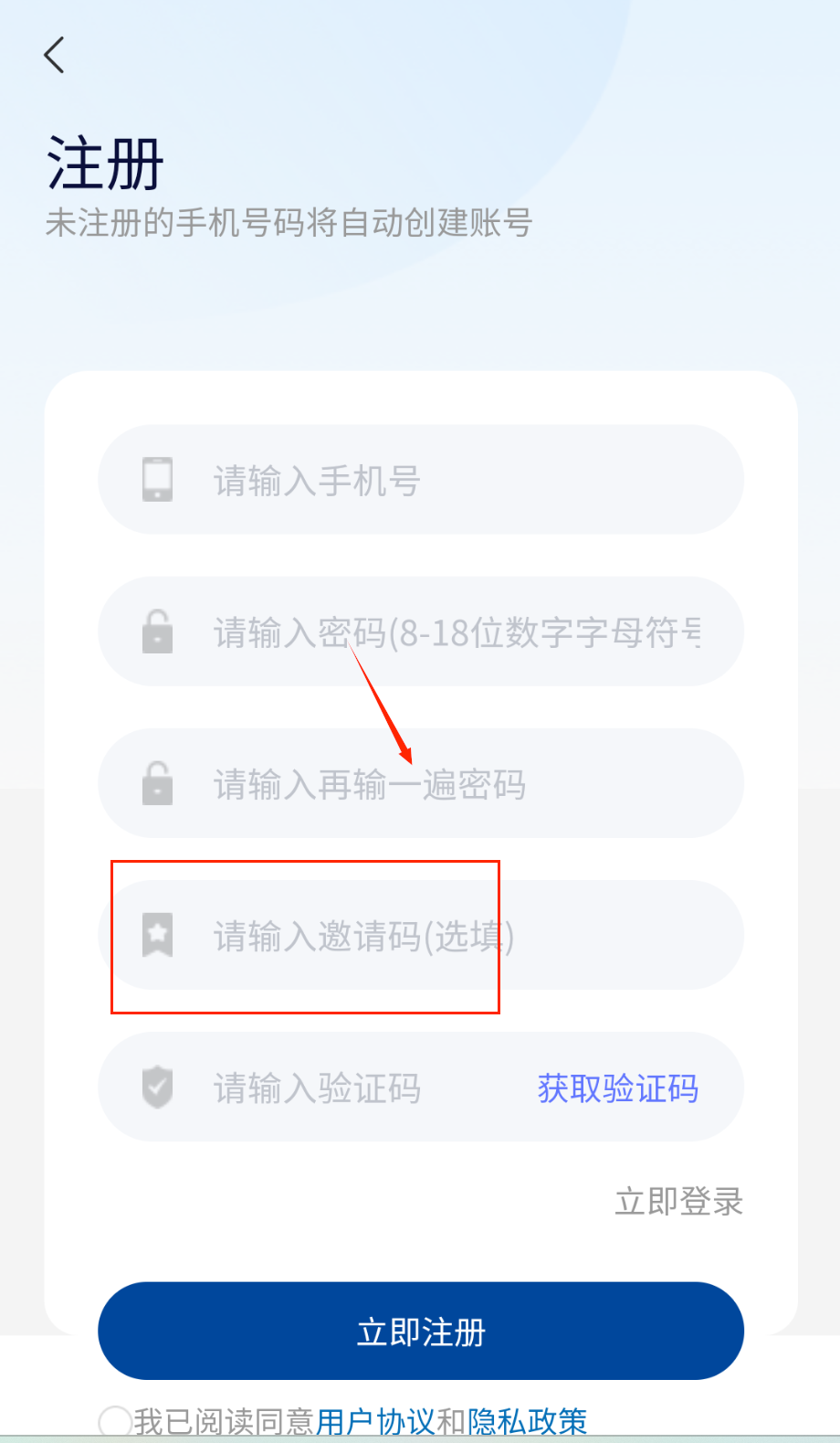 3、看到带星星图标的邀请码输入框不用紧张,有邀请码就填进去享受额外福利,没有的话直接跳过这个步骤,完全不影响正常注册流程。