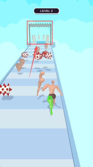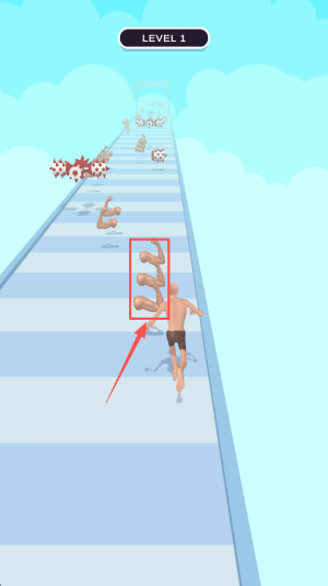 2、收集手臂增尺寸:操控角色在赛道移动,主动收集散落的手臂道具,每收集一定数量,角色手臂尺寸随之增大,能力逐步增强。