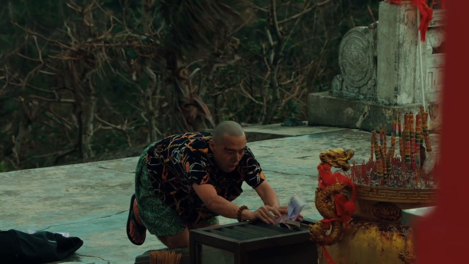 在开始,有一个毒贩一瘸一拐的来到一处寺庙