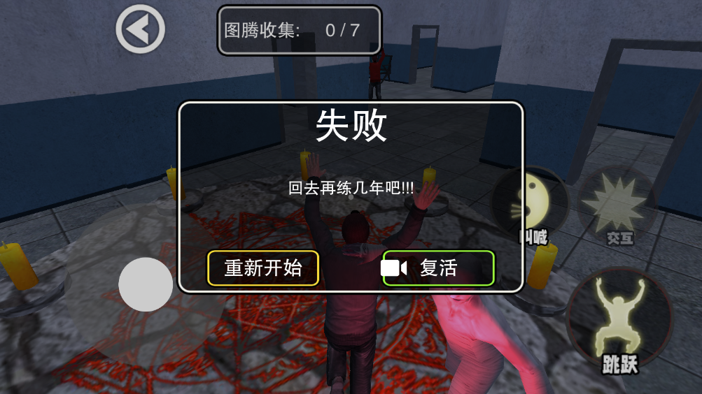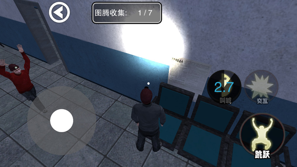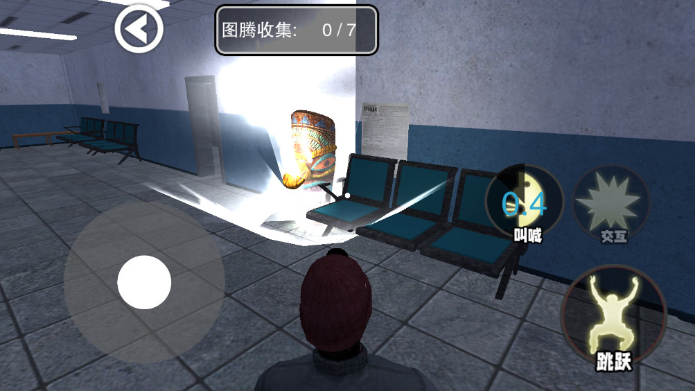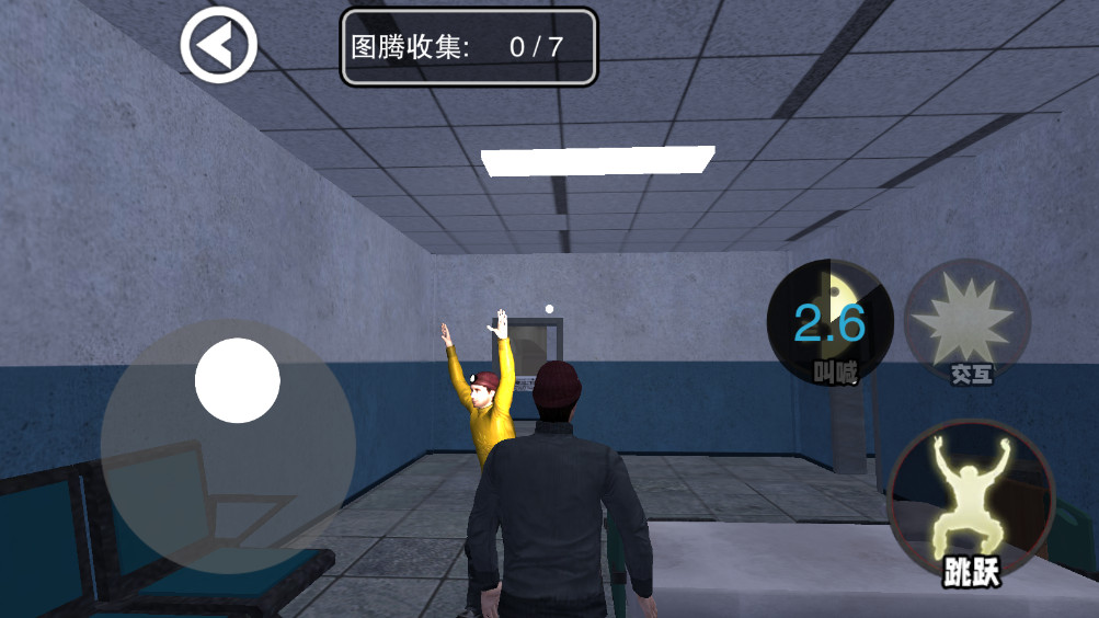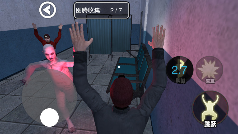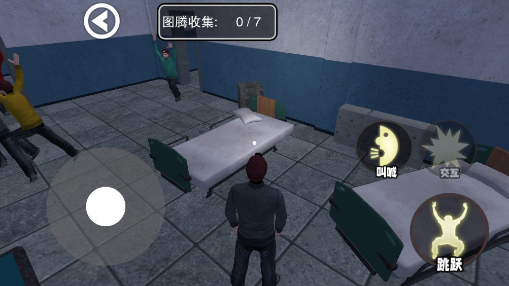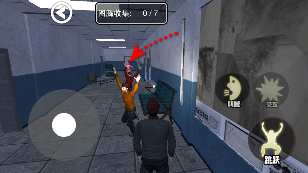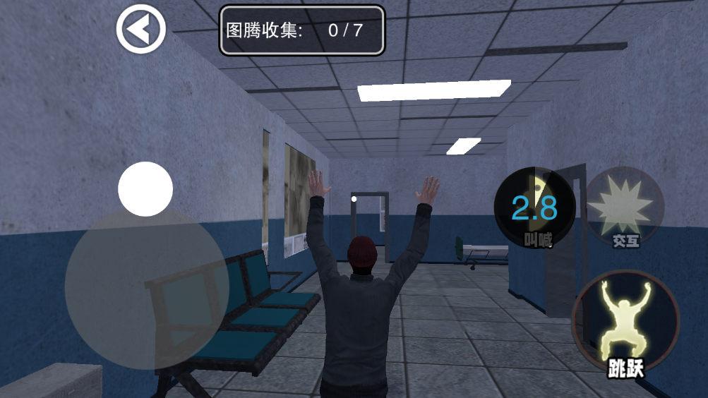 2.进入之后你会到一个废弃医院里面,移动左下角的操作摇杆即可开始跑动,点击呐喊可以加速。