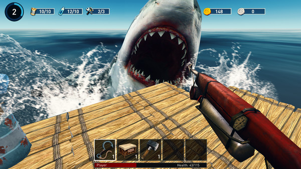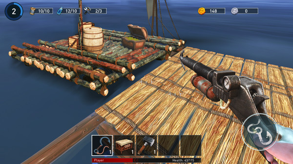 2、生存之路:木筏求生游戏里保持你的武器在手,更高的武器取决于它,不要失去它。