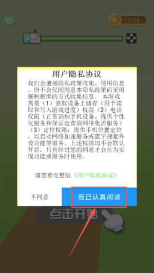 1、首先,阅读并同意用户隐私协议,点击“我已认真阅读”按钮以接受协议。