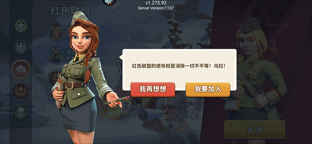 3、这里玩家可以选择不同的国家参加后面的战斗,小编选的是红色联盟,乌拉;