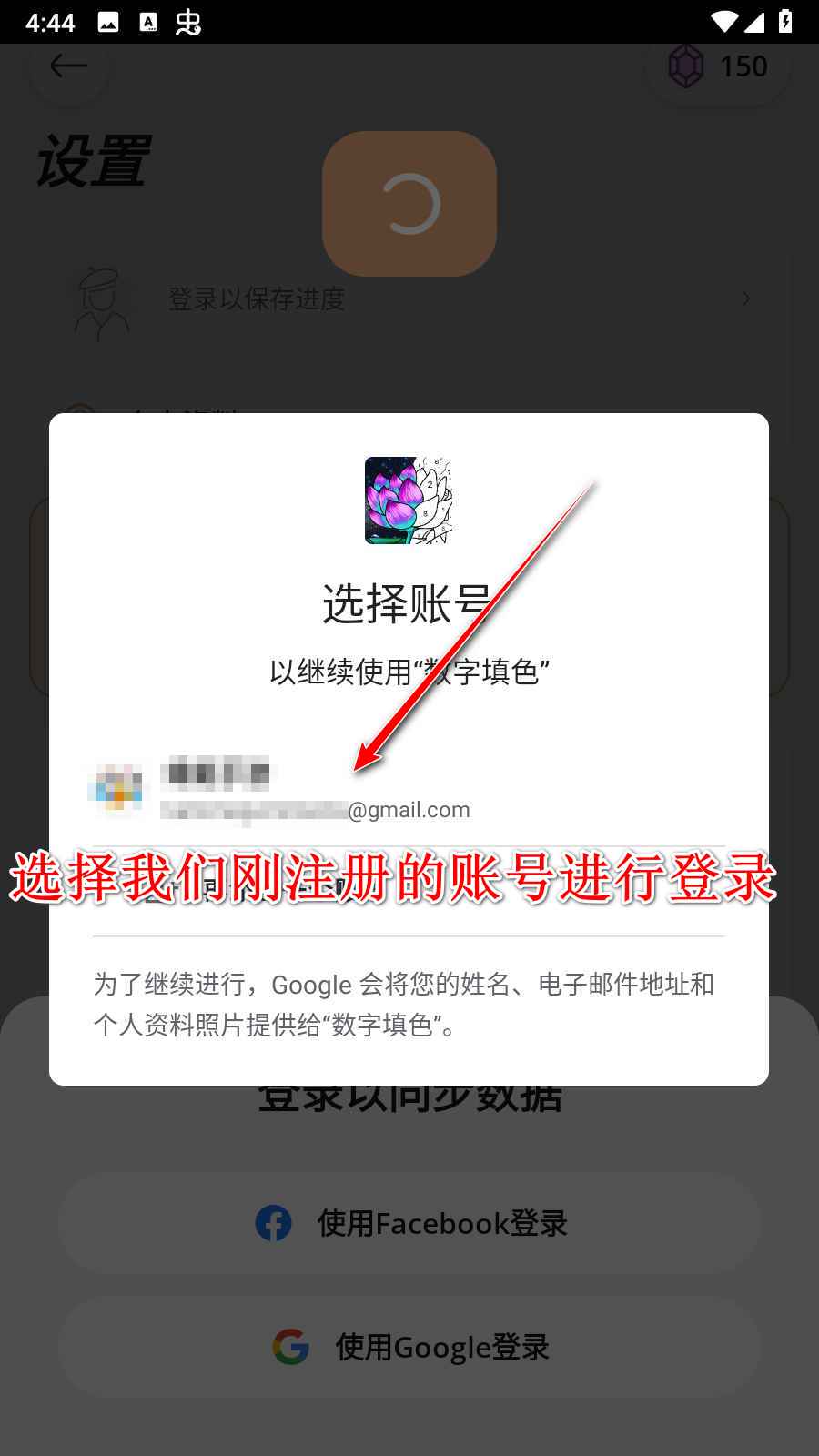 15.点击登录以保存进度,然后选择谷歌账号。