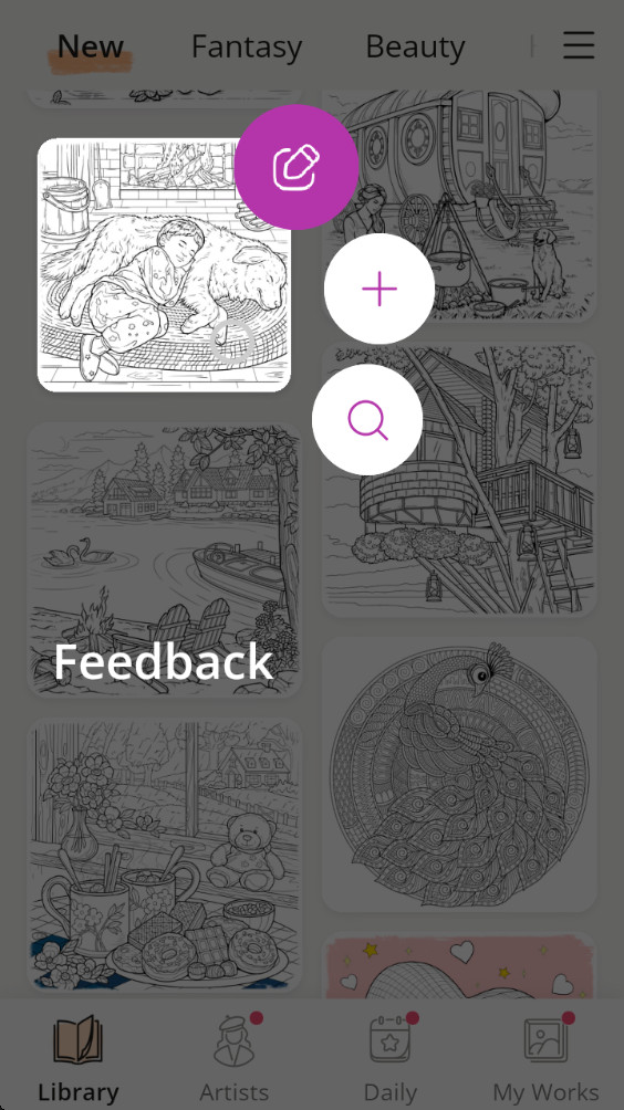 2.往往一个主题里面会有很多张同类型的画作填色卡。