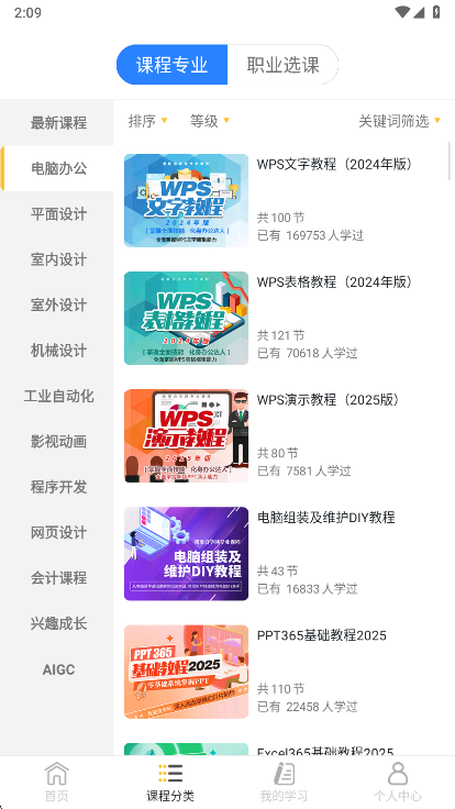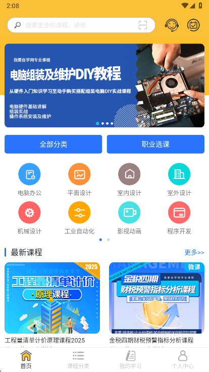 1、在本站下载安装我要自学网app并打开,可以在首页看到全部的课程分类