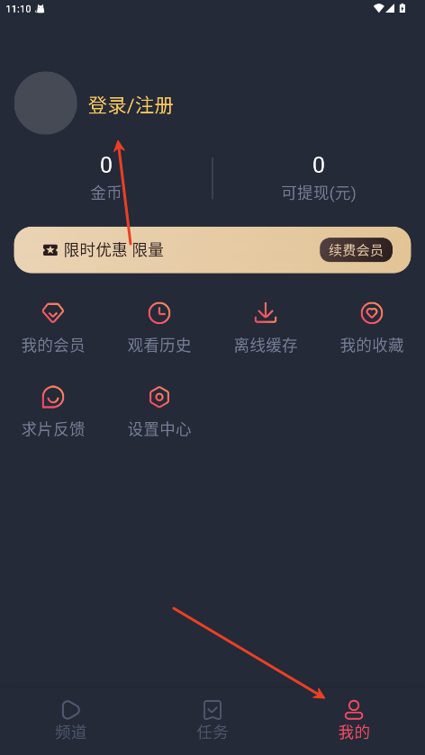 1.在我的内点击登录/注册