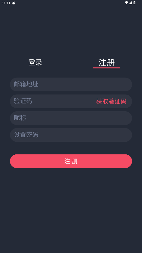 2.切换到注册栏,输入邮箱号获取验证码,设置密码后即可注册