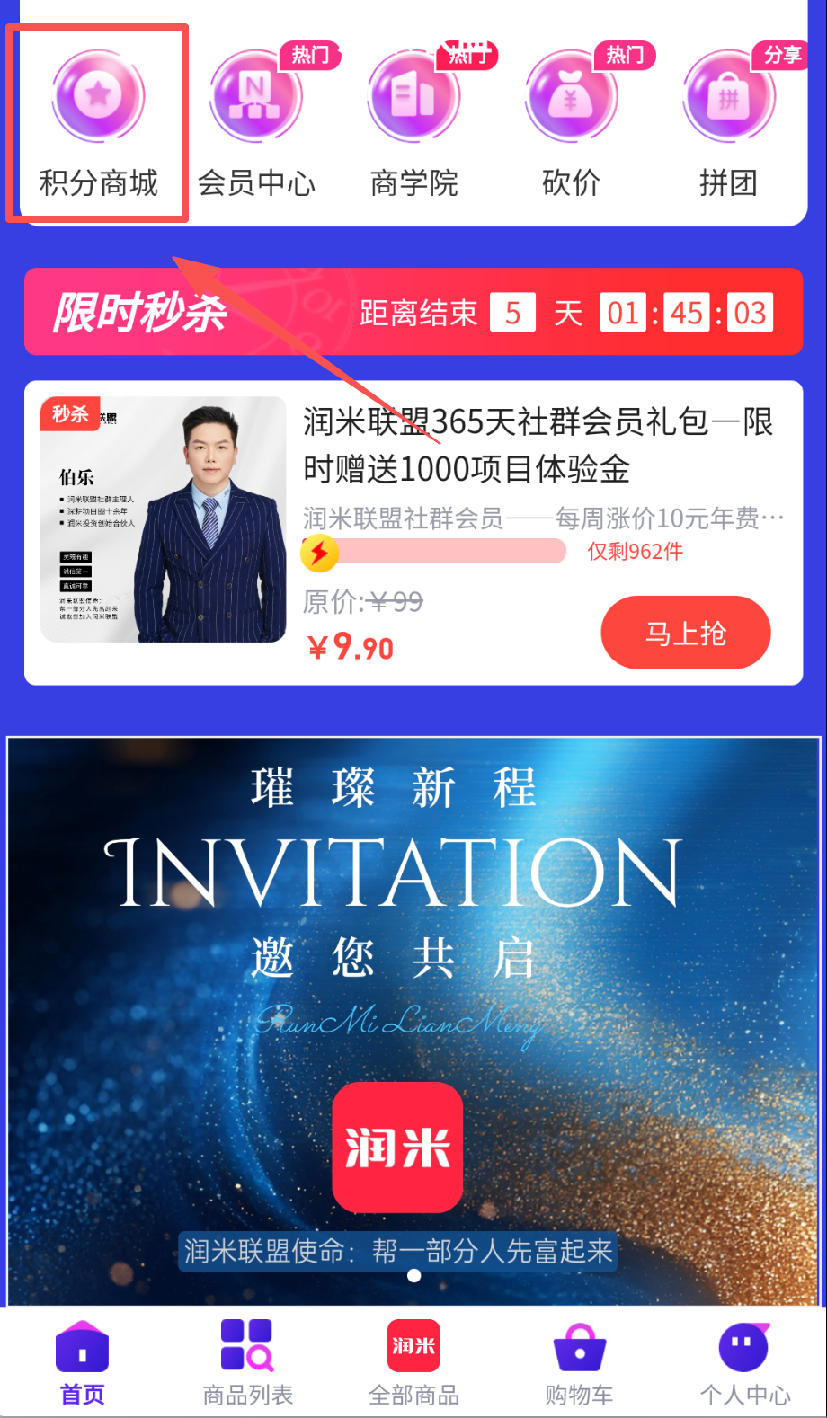 4、 参与平台活动获取积分,进入积分商城兑换实体礼品、课程券等奖励,支持积分转让功能,实现会员间资源共享。