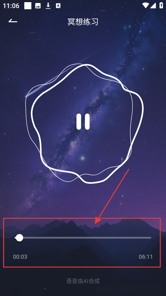 4、进入冥想练习页,可根据进度条了解练习时长,跟随引导,沉浸式进行冥想练习。