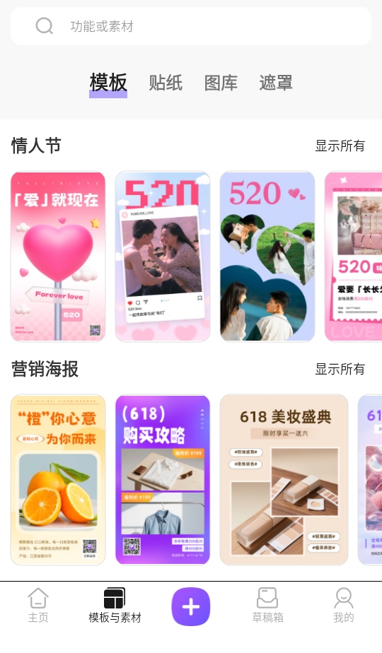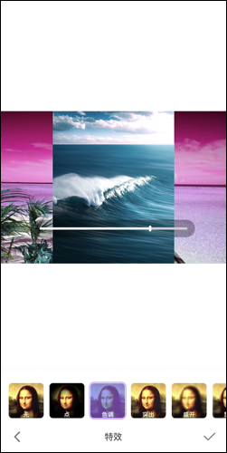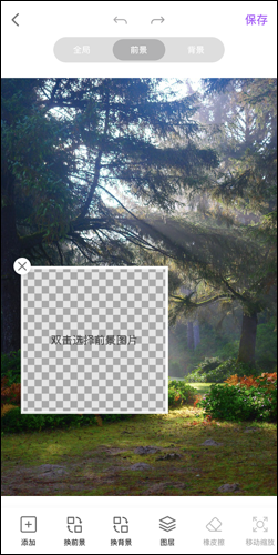 6、用户们还可以滑动底部的工具栏,对前景或背景图片进行添加特效、添加文字/模板等操作。