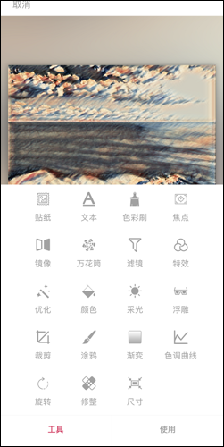 7、而点击工具栏的深度编辑,则可以对图片进行色彩、色调、渐变、镜像、万花筒等调整。