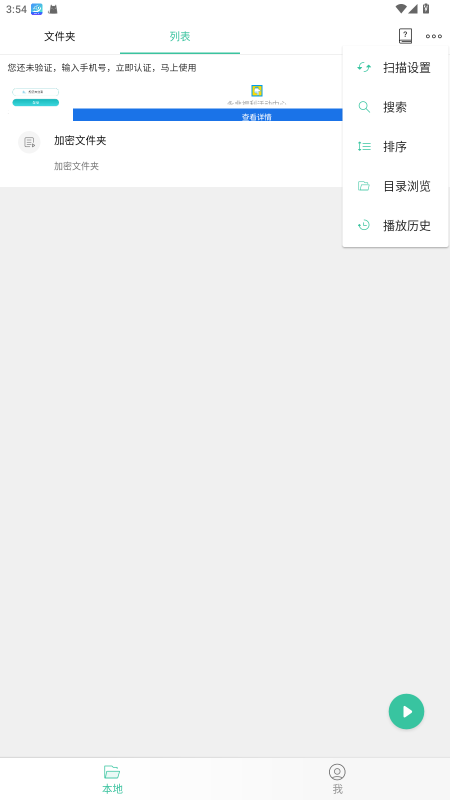 1、首先,打开软件,在本地栏目中找到并点击一个媒体文件夹选项;