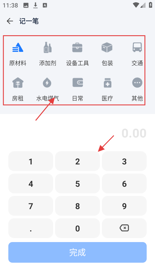 4、记一笔时,先选择费用类别,再输入金额,这样就能准确记录开销,方便管理。