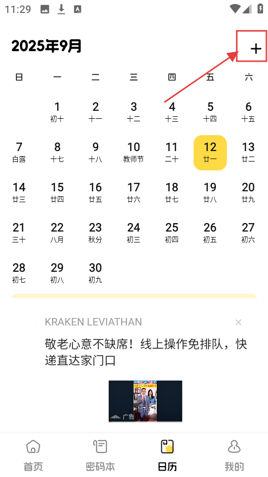 3、在日历页面,点击右上角的【+】号,就能开始添加日程事件,方便记录重要安排。