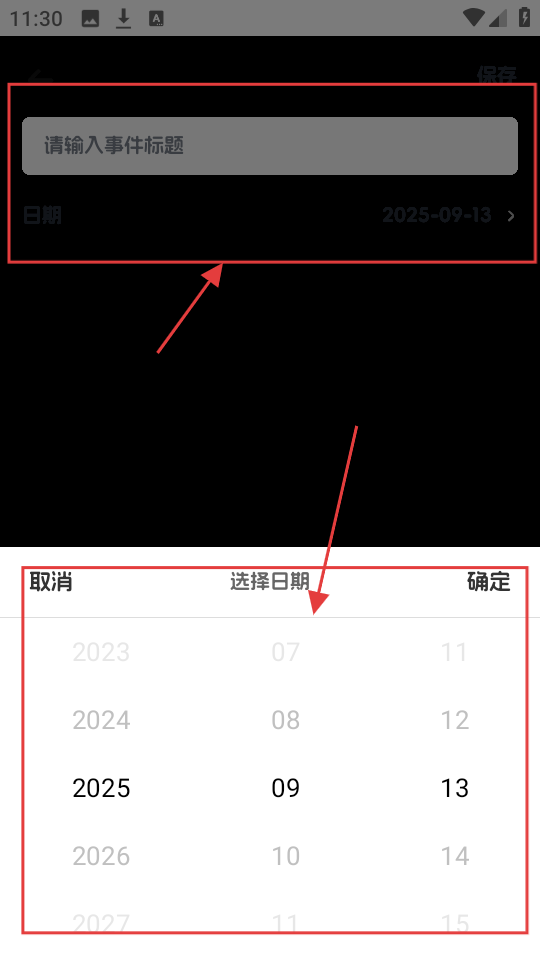4、添加日程时,输入事件标题,选择好日期,这样就能准确记录日程,方便后续查看。