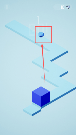2、接着,通过点击屏幕来控制立方体滚动,使其沿着路径前进。