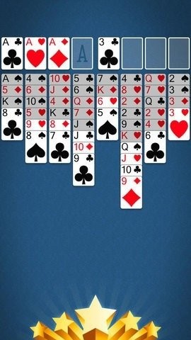 空当接龙的手游规则很简单,将同花式的扑克牌从小到大,排列在空白框。利用可用单元作为空位将所有纸牌都移到回收单元。操作也简单,点击扑克牌拖动进行位移,点击扑克牌可以翻牌。