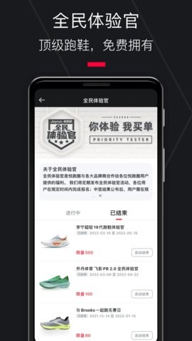 悦跑圈app最新推出全民尝试官活动,用户通过跑步分享感受,有机会免费获得顶级装备。