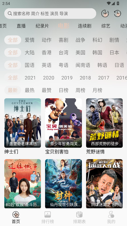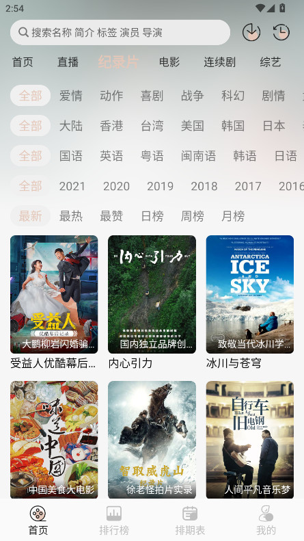 1.打开NTHLB,可以看到首页有着最新的直播、纪录片、电影、连续剧、综艺等板块内容。