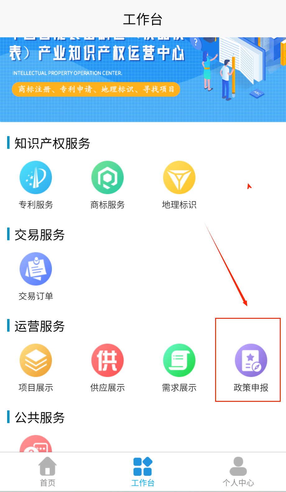 4、进入工作台管理交易订单与查看政策申报详情,或在个人中心修改账户信息,联系平台获取支持。