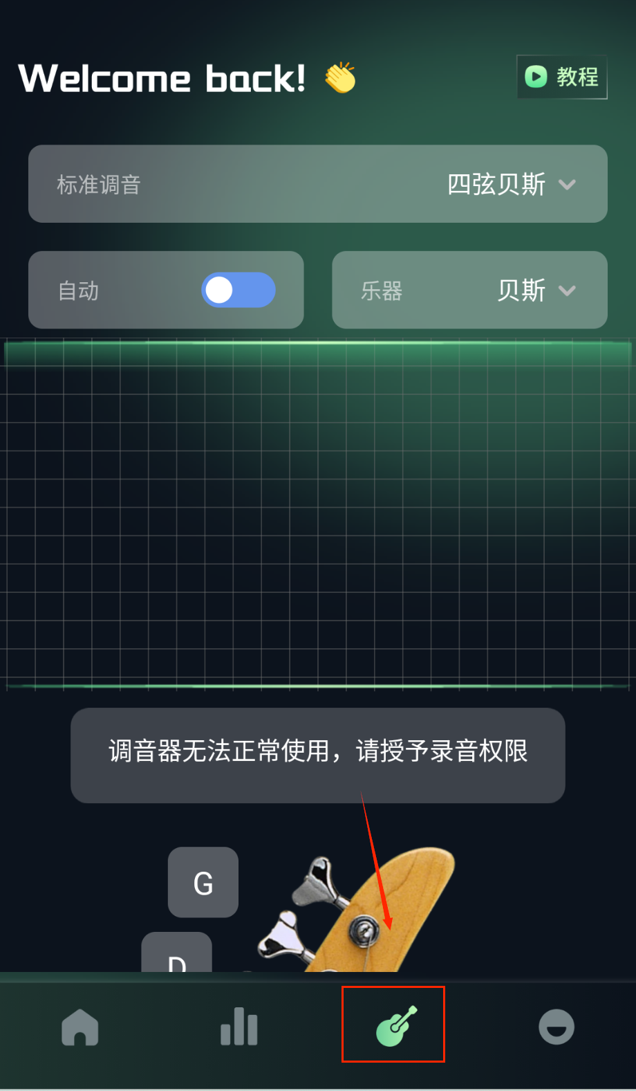 2、内置高精度智能调音器专为吉他、尤克里里等弦乐器优化,可自动捕捉识别音高偏差并提供直观校准方向指导。